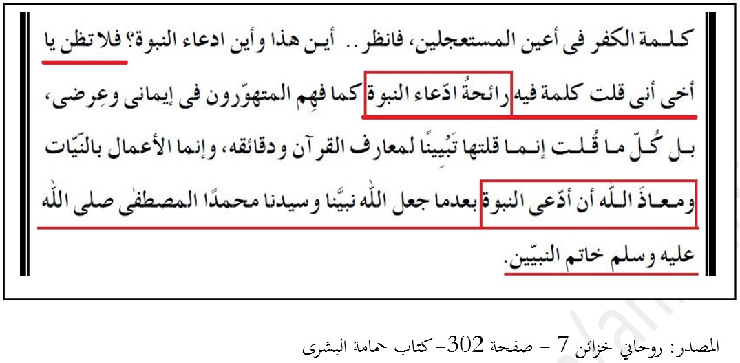 ها هو غلام أحمد القادياني يكفر من يدعي النبوة، ويقول عن ذلك أنه مخالف للقرآن، وأنه إلحاد وزندقة، ويؤكد على أن الله جعل نبينا خاتم النبيين فلذلك يتعوذ من أنه ادعى النبوة.